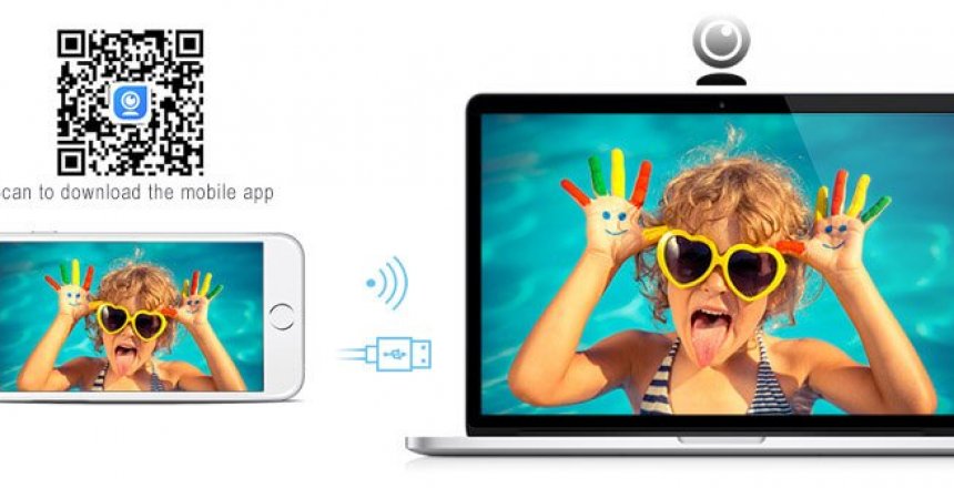 e2esoft has written iVCam, you install an app on your smart phone or tablet and connect it using a USB cable. You can also connect more than one device to your Windows PC.